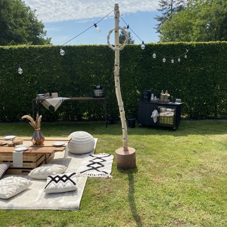 Wil je een leuke BBQ, picnic of gewoon chillen met vrienden/familie? Doe het dan zeker in stijl en vooral met de juiste cozy vibes van onze boho picnic. Geniet van een vuurkorf met marshmallows, een leuke lage ingedekte tafel, een klein keukentje, spelletjes en gezellige verlichting met een achtergrondmuziekje.